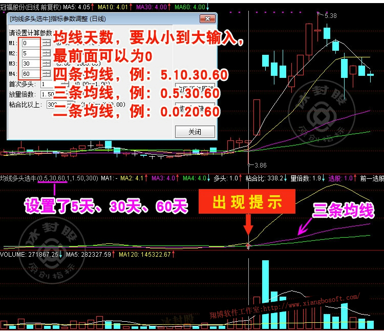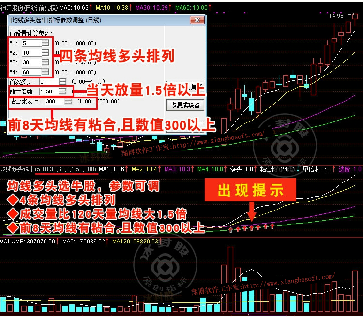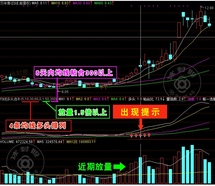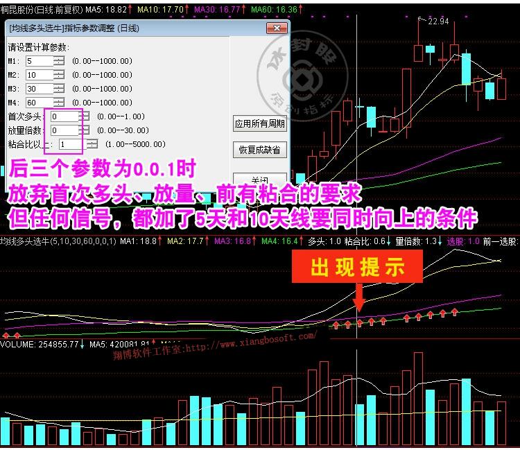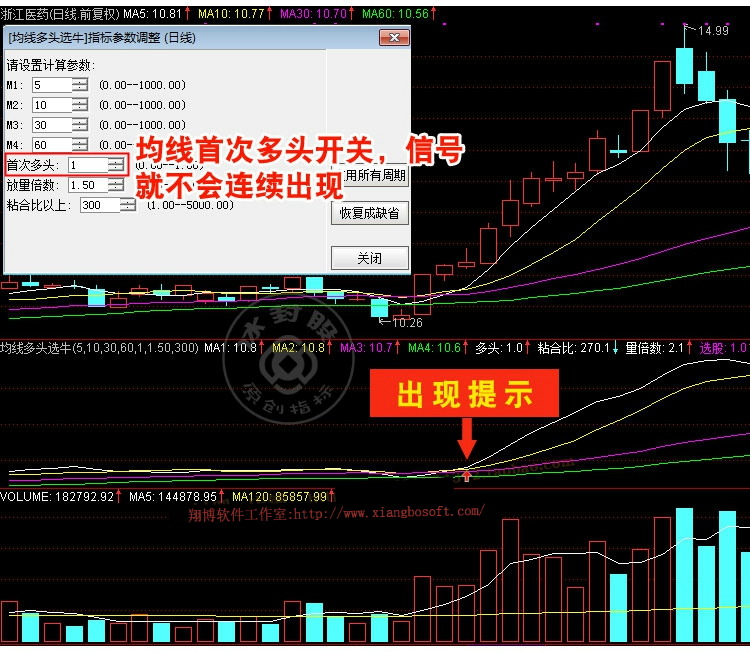 特别提醒#2:作为本次指标的特色,也为了向你展示均线多头排列超强选股法的威力,其中精彩敬请实战中体验。