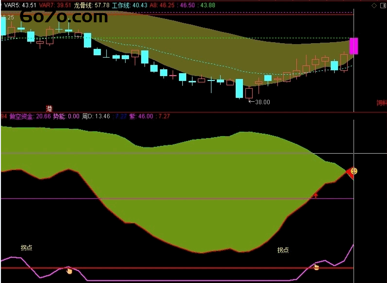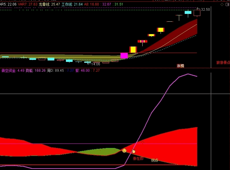 STICKLINE(势能差>REF(势能差,1) AND 势能差>临界线,0,势能差,2,0),COLORMAGENTA;
