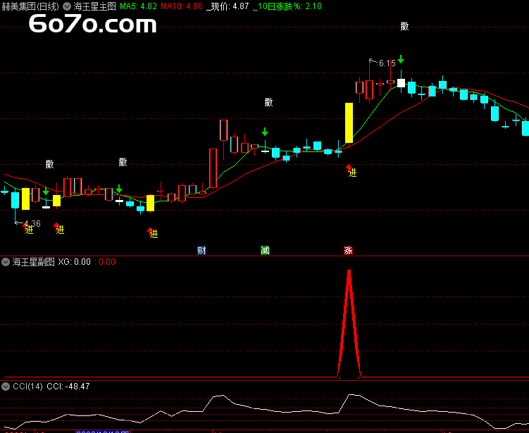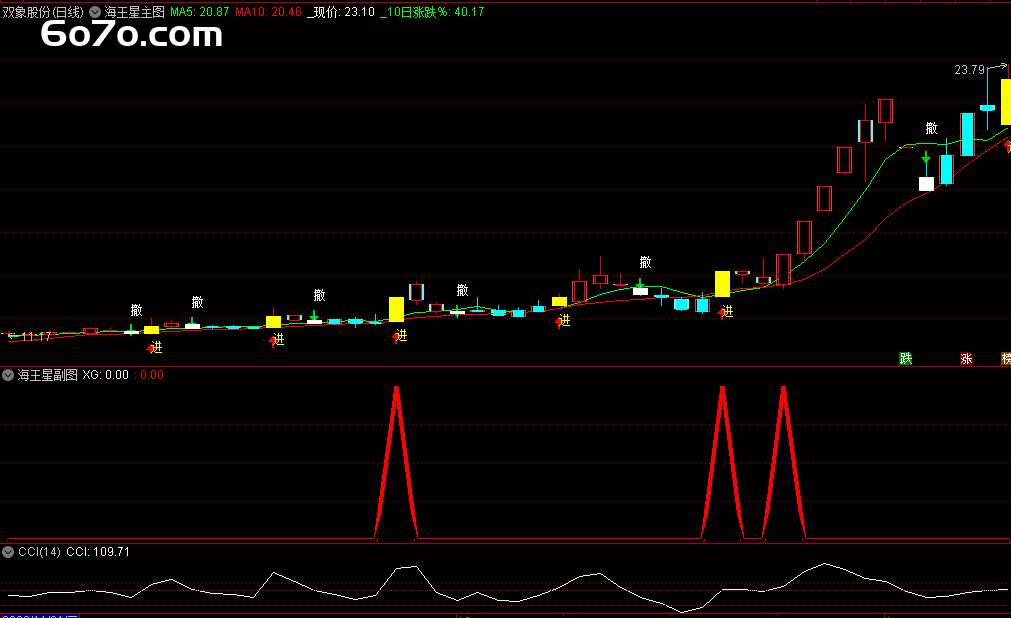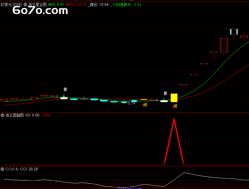 黄柱信号:CROSS(MA5,MA10) AND VOL>MA(VOL,20)*1.38;