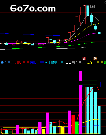 正常阴量:IF(C<O AND VOL<=REF(VOL,1)*1.33 AND VOL>=REF(VOL,1)*0.67,VOL,DRAWNULL),COLOR00FFFF,LINETHICK3;