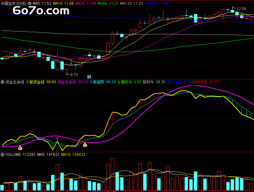 资金生命线:DMA(主力资金线,0.618),COLORMAGENTA,LINETHICK2;
