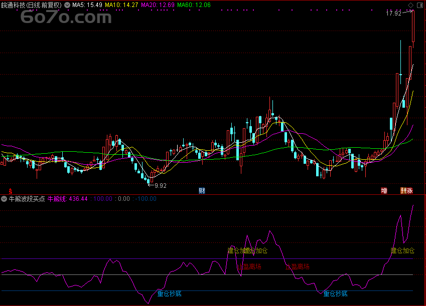 - 重仓抄底:当市场跌到谷底,牛熊线触及-100时,指标会发出“重仓抄底”信号,让你在最低点大胆入场。