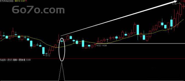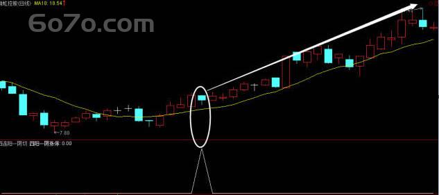 突破条件:当5日K线组合形成“四连阳+一阴切线”后,次日股票涨停突破,波段上涨行情正式展开。