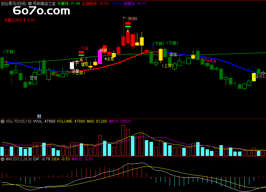 通过21个维度给个股综合打分(0-100分),当紫色轨迹突破80分警戒线,意味着进入主力狙击区。