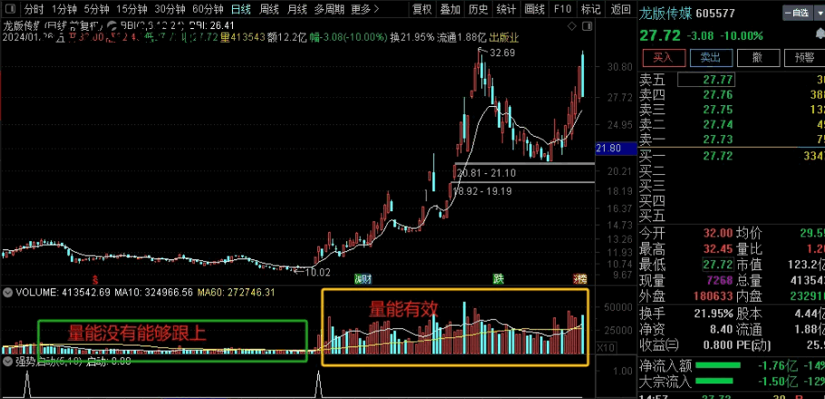 成交量验证:在信号发出后的 3 个交易日内,观察成交量是否能持续放大并超过 60 日均量线,只有成交量配合,才能增加上涨的可靠性。