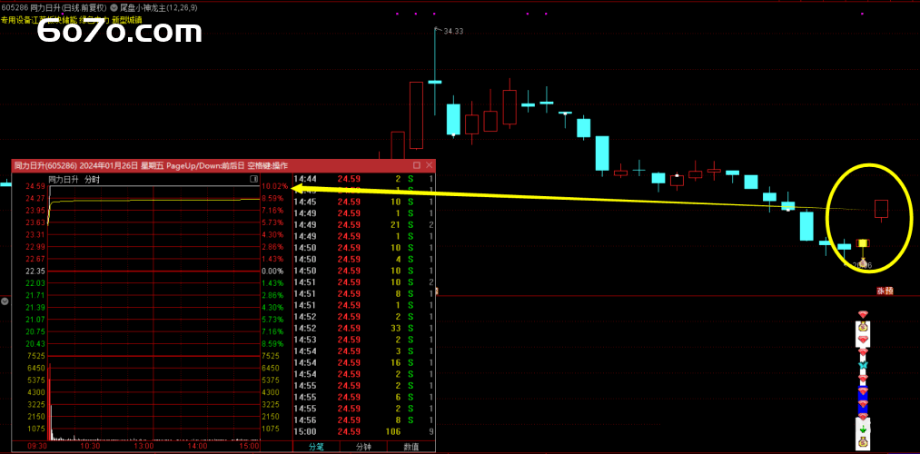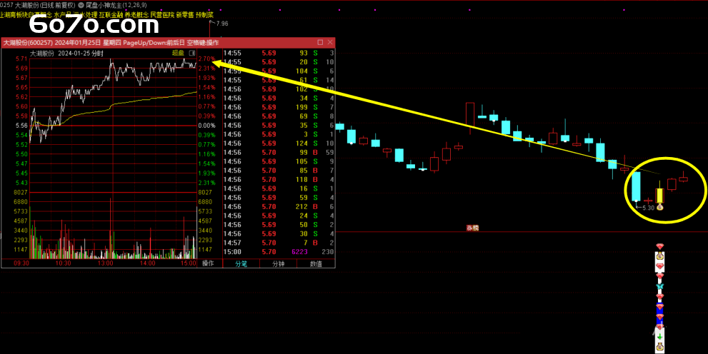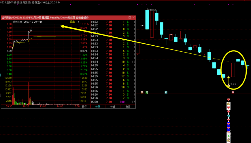 这些指标通过对股价、成交量等基础数据的分析,构建出一套尾盘选股和操作的逻辑体系。当主图和附图指标出现特定信号时,结合选股指标筛选出的股票,就是尾盘小神龙策略的目标股。