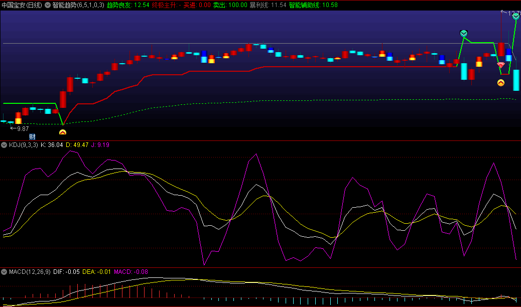 买点信号:当股价从下向上穿过趋势线时,说明股价开始转强,这是一个明显的买入信号。指标会用红色标记出来,让你一目了然。