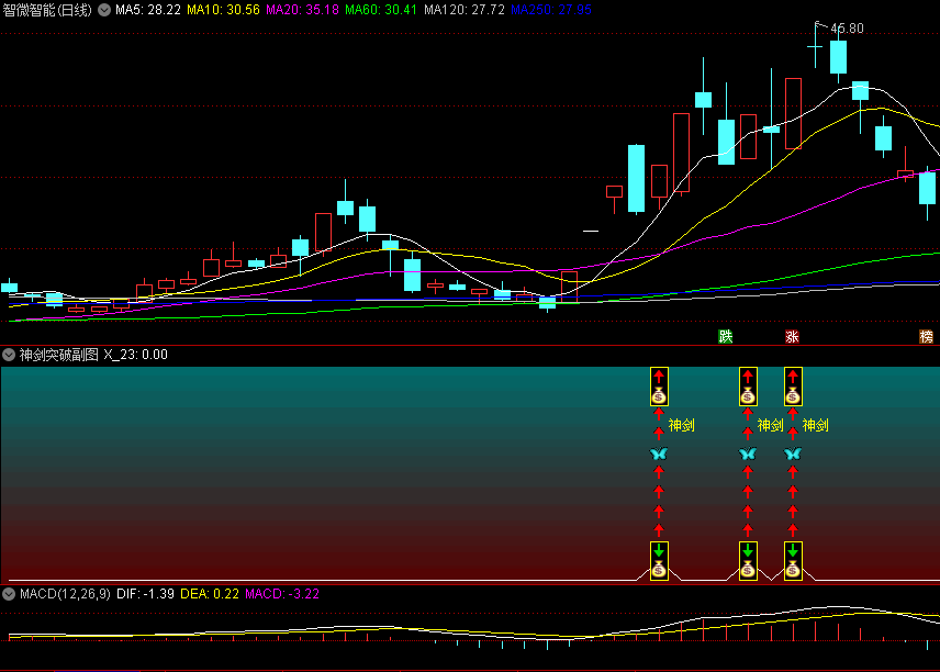 老张,40岁,普通上班族,业余时间喜欢炒股。他在股市里摸爬滚打了多年,却总是亏多赚少。直到有一天,他偶然接触到一条名为“神剑突破”的通达信指标,从此开启了他的逆袭之路。