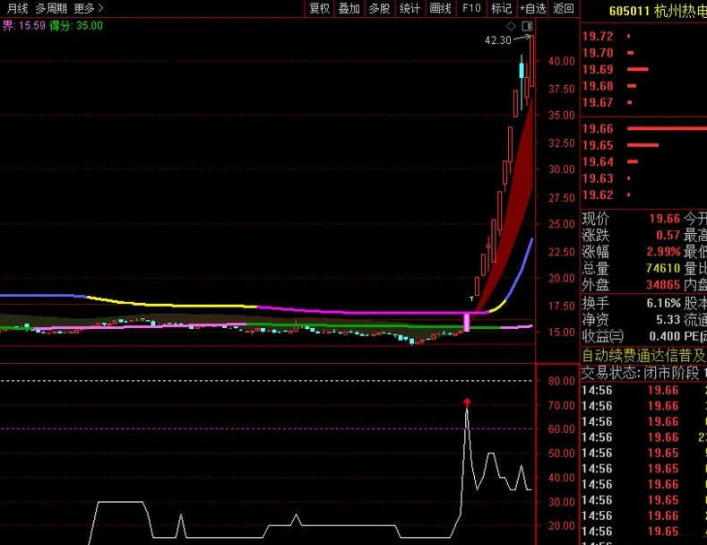 中科曙光量能评分20分+筹码评分12分+突破年线加分=总分72