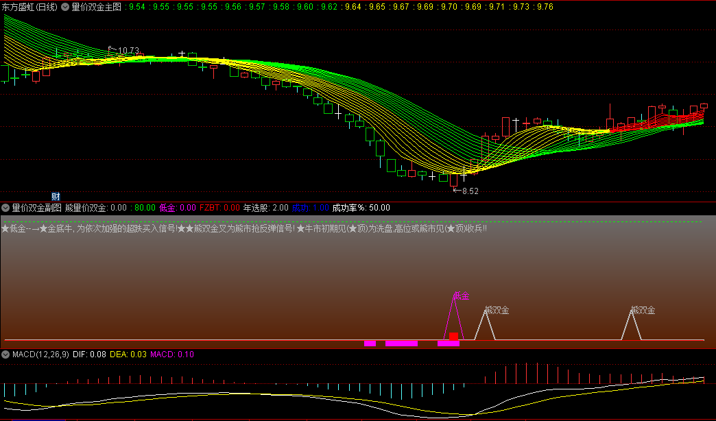 我设计的【量价双金】指标,核心是破解这组黄金三角关系: