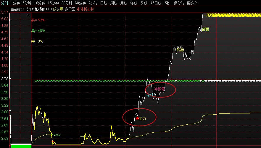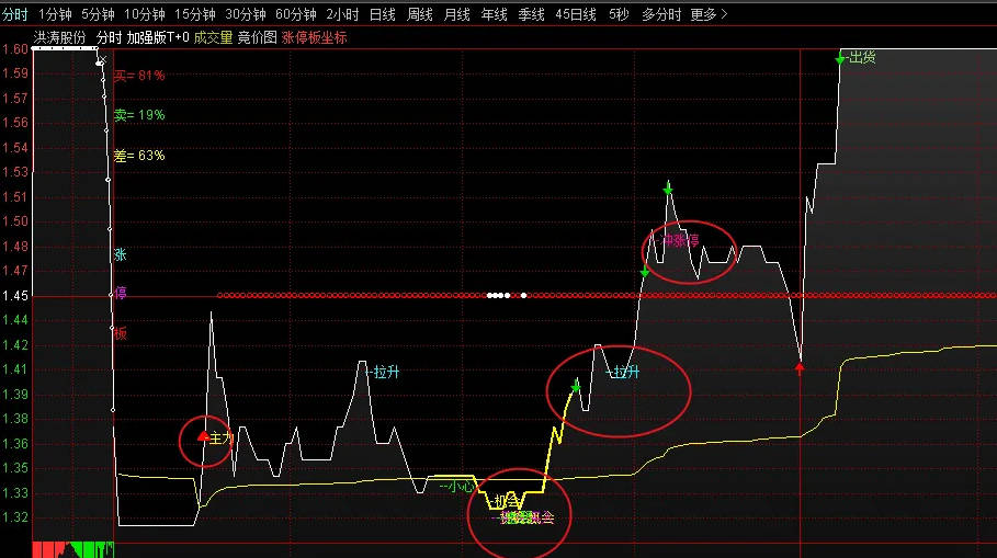 我也是偶然间收集到这个加强版T0分时主图指标的。一开始,我也就是抱着试试看的心态研究了一下,没想到越看越觉得有门道!这个指标是专门用于分时主图的,它能在盘中实时反映股票的走势变化,对于做T+0交易的朋友来说,简直就是神器啊👍。