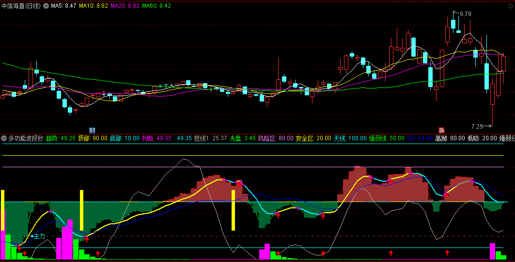 操作口诀: 日线出现「蓝柱」+「红带」时,切到60分钟图找分时低点,别在早盘前半小时动手!
