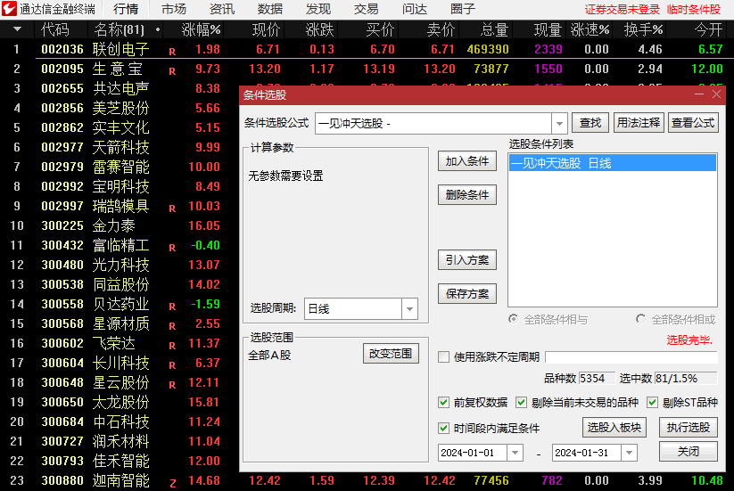 去年8月大盘暴跌那会儿,我把"一见冲天"塞进自选股池,结果当天连出3个假信号!气得差点卸载通达信5...
