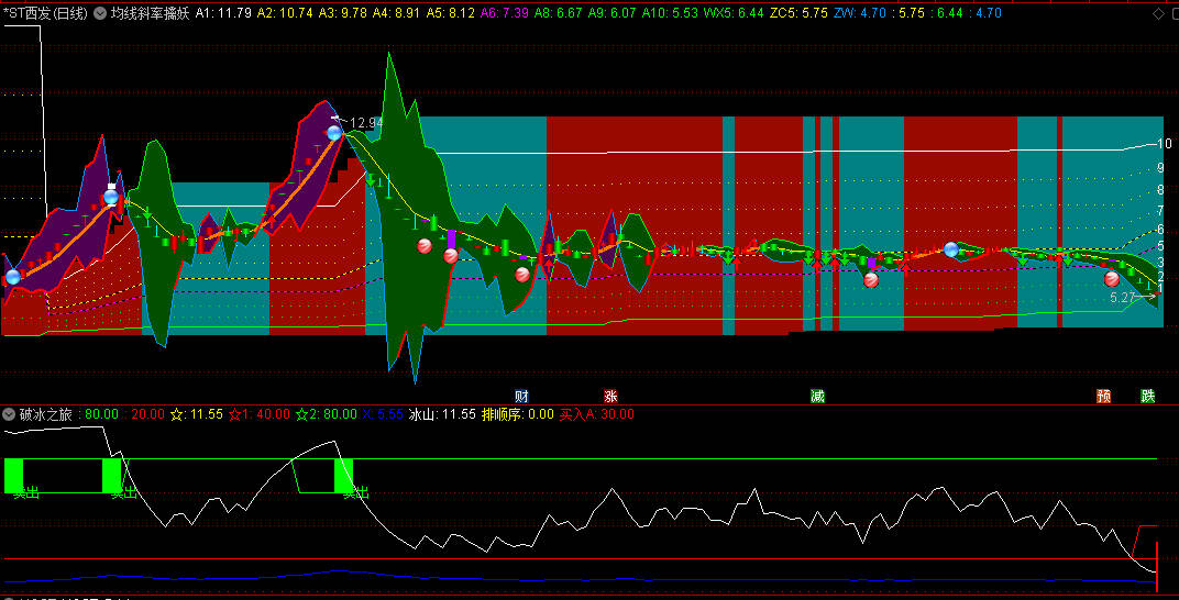 妖股见顶前,一定会出现斜率快速衰减(指标变黄或变绿)。此时,主力正在出货,散户千万别贪!