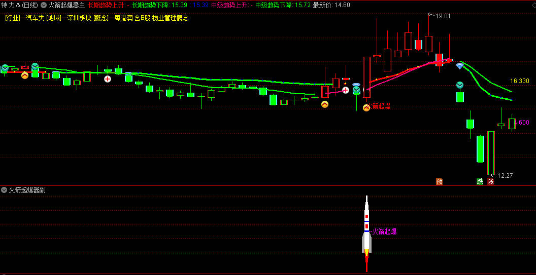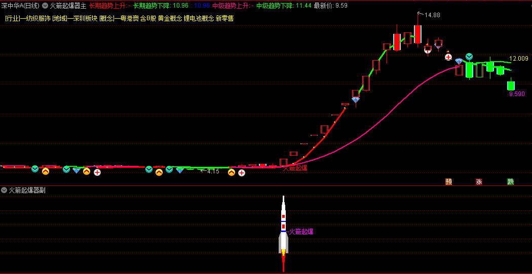 通达信“火箭起爆器”三件套(主图/副图/选股公式)