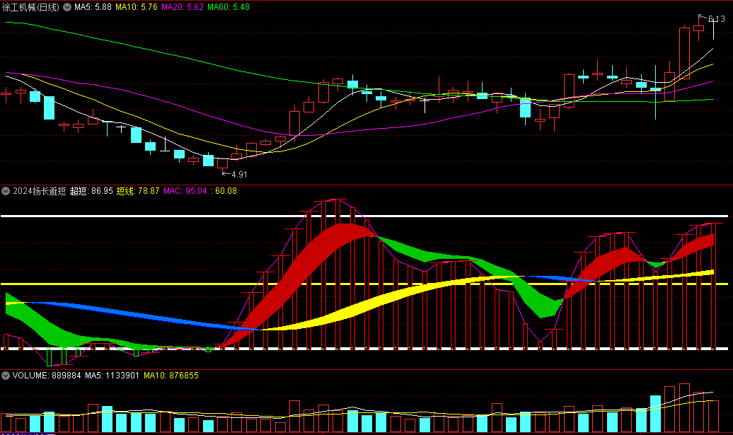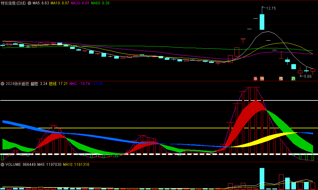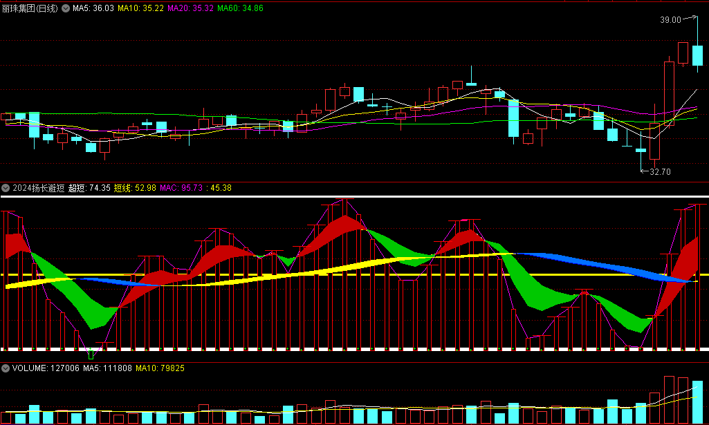 2024年祝大家股市长虹,发个自用不错的扬长避短趋势指标,观察飘带颜色来确定趋势涨跌,好操作。