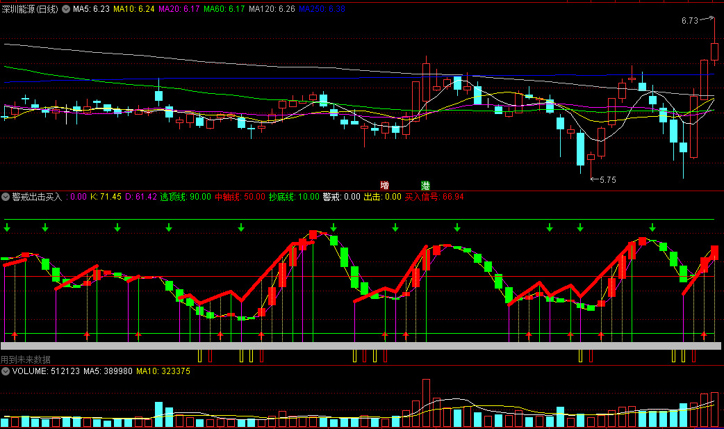 自编指标,主要是针对阶段底部抄底用的,在相对低位给出出击买入预警。