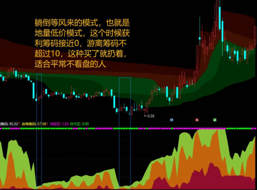 顶端的红绿柱是持股区和持币区的标识,可以理解为买卖点。