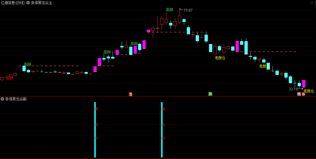 〖涨停黑龙会套装〗主图/副图/选股指标 高抛/低吸/老鼠仓等提示 通达信 源码