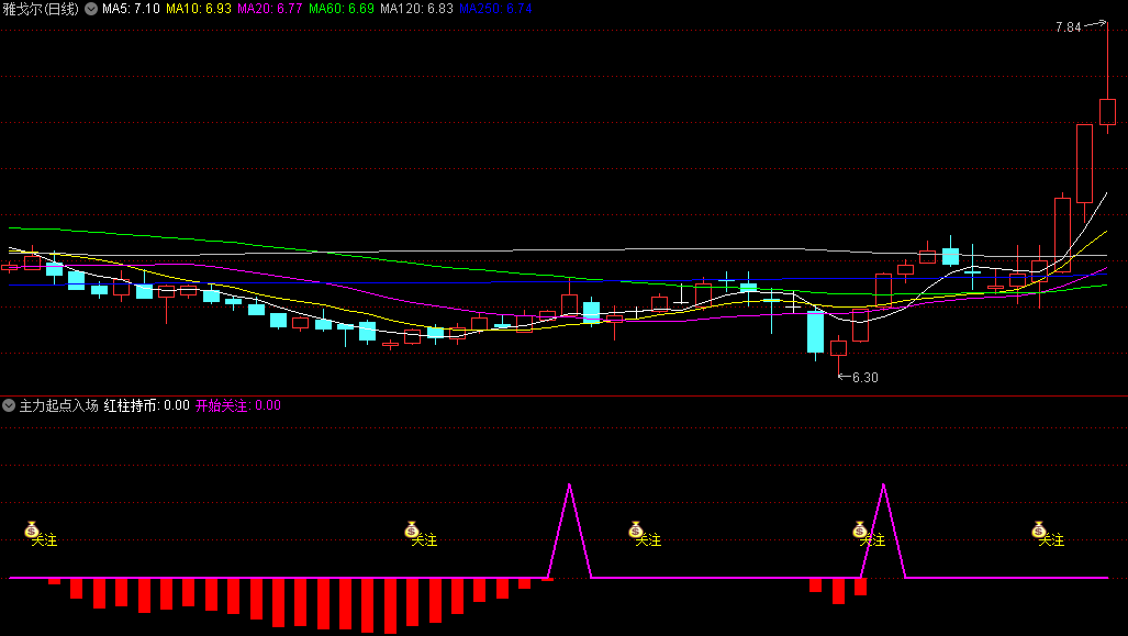 红色柱子出现,是主力入场信号,结合K线分析判断,几率还是挺高的。