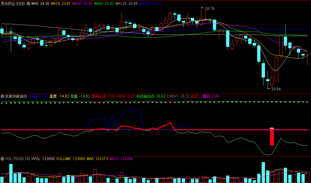 通达信【精准牛股起涨点】主图/副图/选股指标,近期充分调整,在操作线附近获得支撑后强势上涨