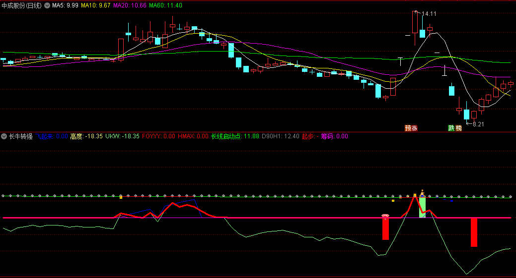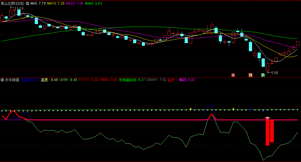 〖长牛转强〗副图指标 绿线上穿变红线 股价要走强 通达信 源码