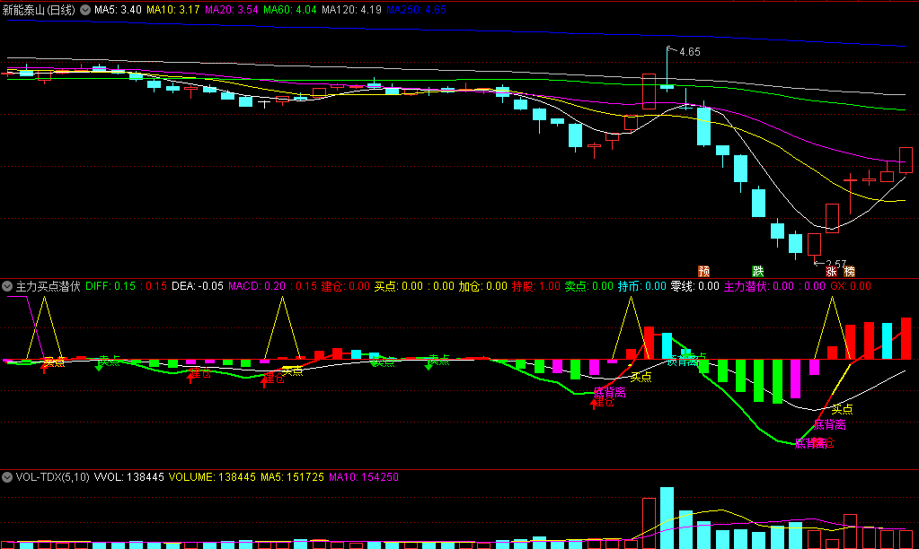 〖主力买点潜伏〗副图指标 建仓买点 MACD顶背离+底背离 通达信 源码