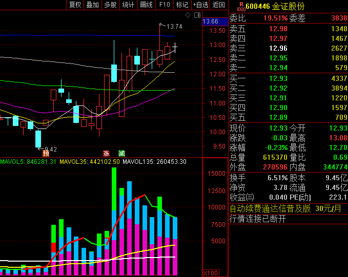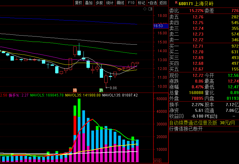 量能类指标,由5/35/135三条均线量组成,直观的显示买卖盘、挂单量。当短线上穿长均量线时,柱子变红色,绿色为卖盘,当占比较大时,注意调整仓位规避风险。