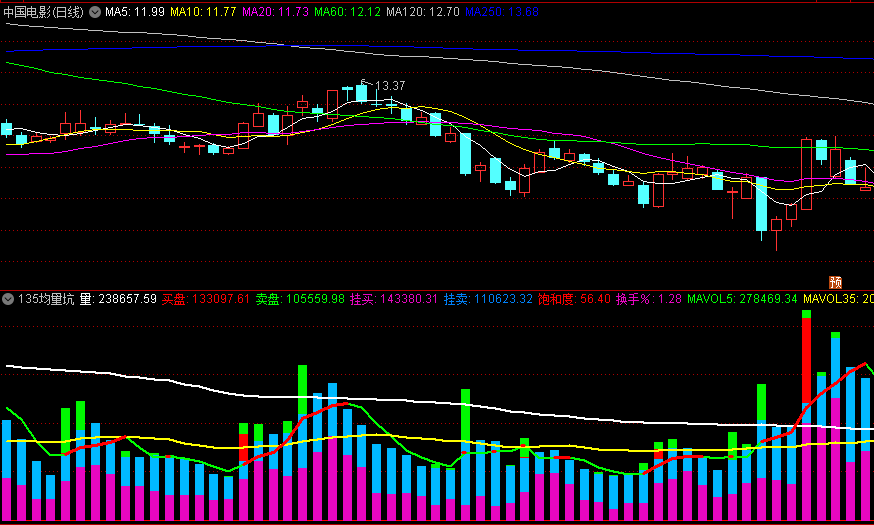 〖135均量坑〗副图/选股指标 由5/35/135三条均线量组成 直观显示买卖盘挂单量 通达信 源码