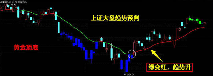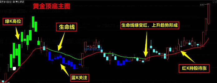 3、生命线由绿转红说明大盘中期趋势向上,生命线由红转绿说明大盘中期趋势向下;