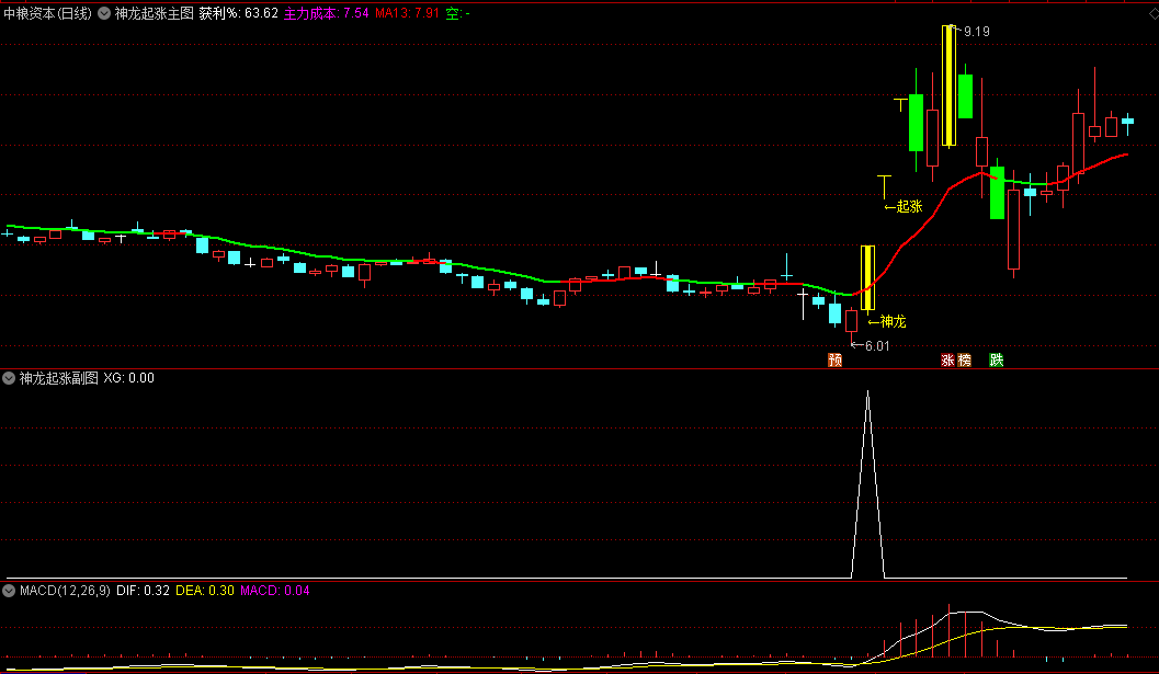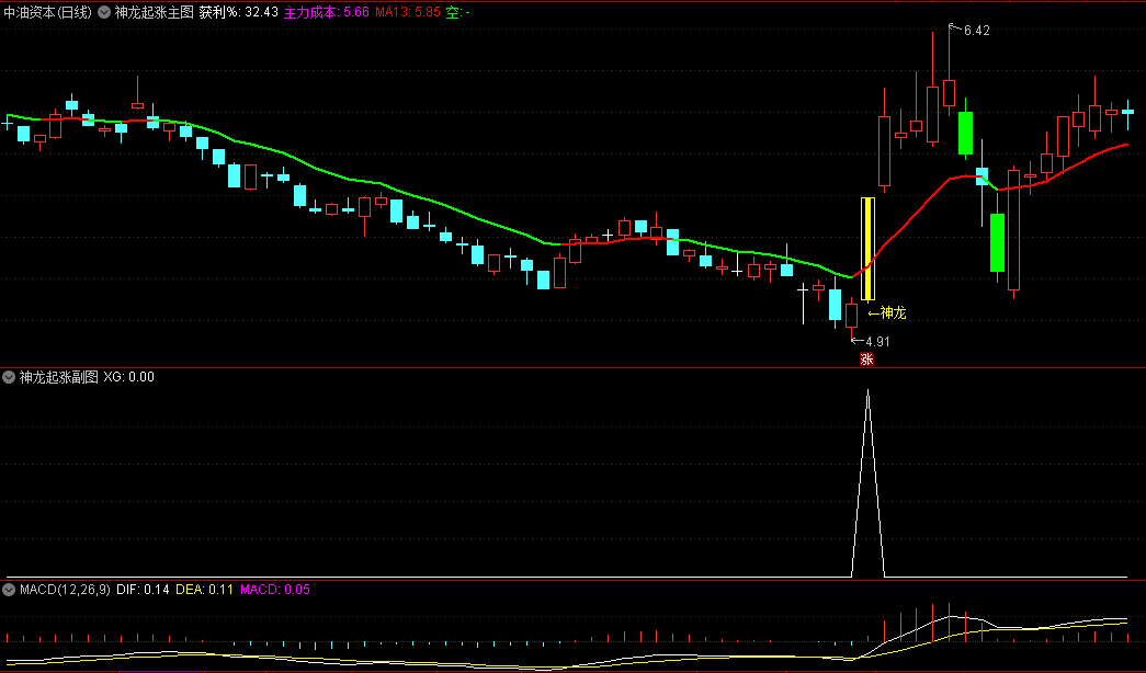 3)、神龙起涨:股票价格在短时间内突破了成本区。这意味着有主力资金在进行积极的操作,试图推动股价上涨。在这种情况下,股票可能出现一段上涨趋势的起始阶段。应密切关注这种形态,因为它预示着一波上涨行情的开始。