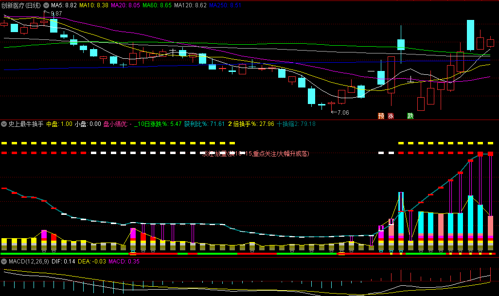 5.顶上黄小块:二十换>60/白;顶中:白小块.十平均换>3/有庄可高抛低吸/红小块.十平均换>5/庄家强势)。