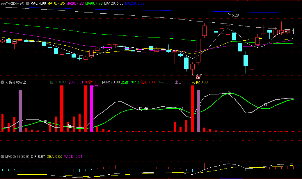 跟庄还不错的〖大资金吸货出击〗副图指标 庄家跑哪 咱就跟哪 通达信 源码