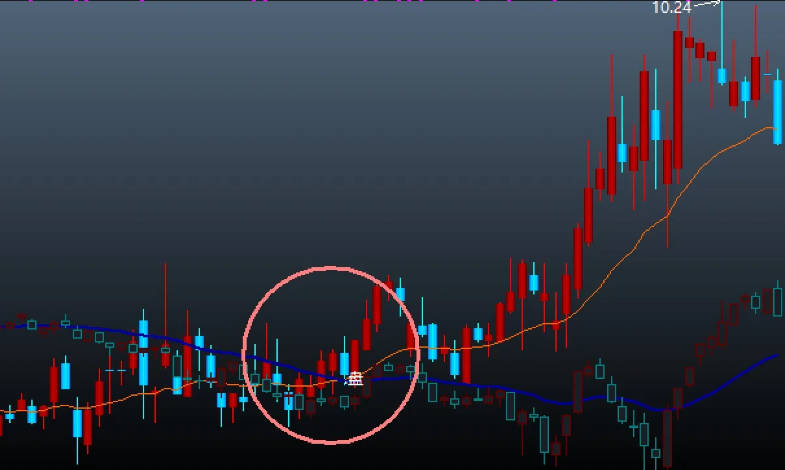 底部背离,下跌中有不怕死资金提前买股,直到指标金叉或上零轴(买点出现),如果股票强于大盘,恭喜你,抓住一波收入。
