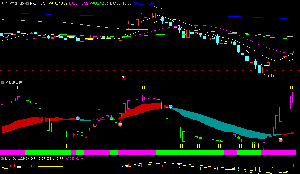 分享一个网红《私募爆量擒牛》指标,没有未来,看了一下,源码里面结合了KD,大家参考一下。