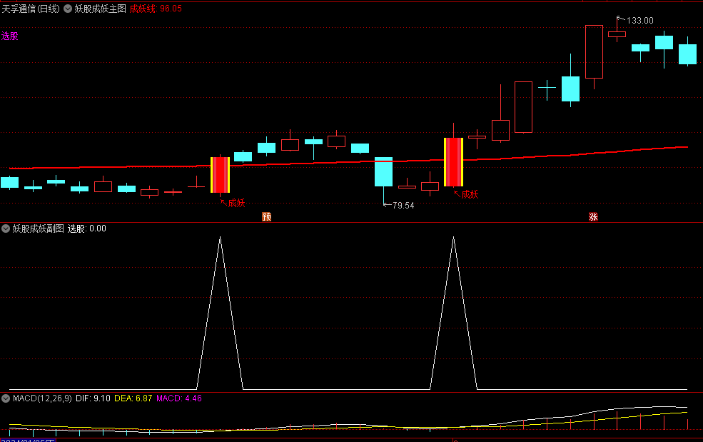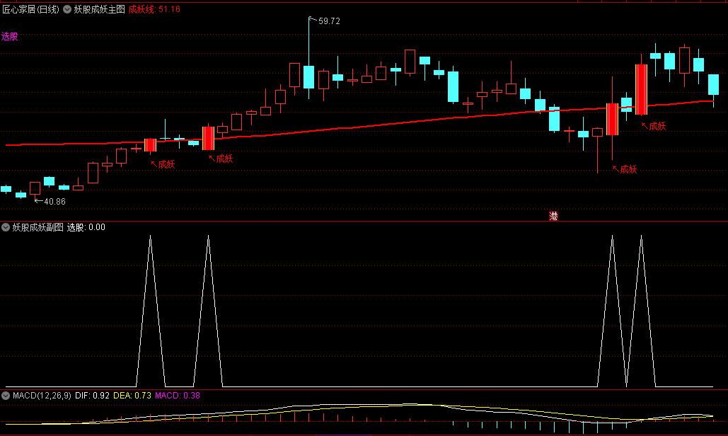 1主图、1副图、1选股,利用主力资金和主力拉升趋势编写,成为妖股的时候,必有红色的“成妖”文字提醒你!!源码无密无未来;源码分享暂时不加密码。