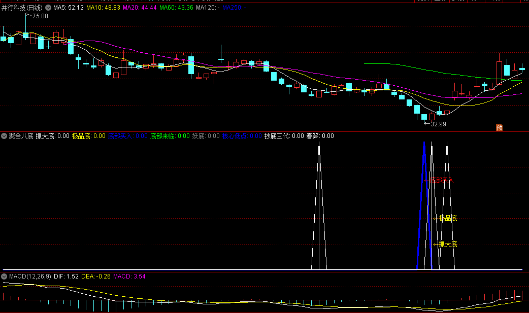 1副图和8选股;聚合了抓大底、极品底、底部买入、底部来临、妖底、核心低点、抄底三代、春笋这八种不同的底部选股,源码分享暂时不加密码。