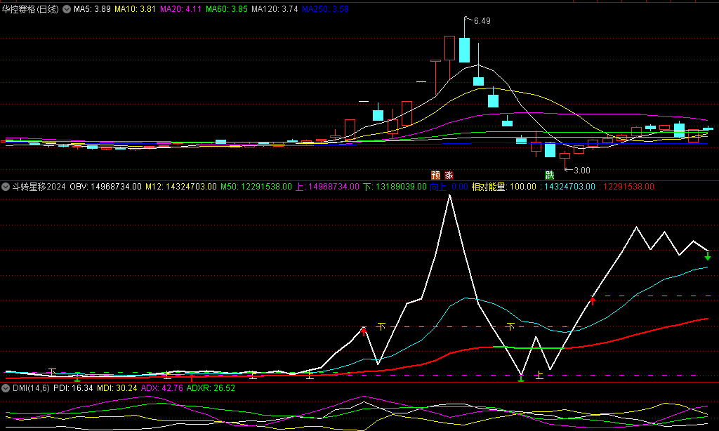 以OBV+VOL组合编写而成的斗转星移2024指标,可以帮助你定位向上和向下的转折点。