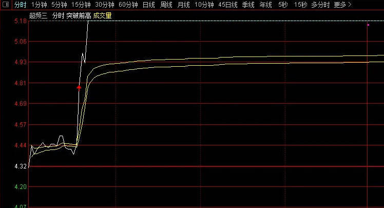 分时主图;在分时主图上用红色箭头提示前高被突破的位置,同时用一条蓝色虚线辅助做标记,源码分享暂时不加密码。