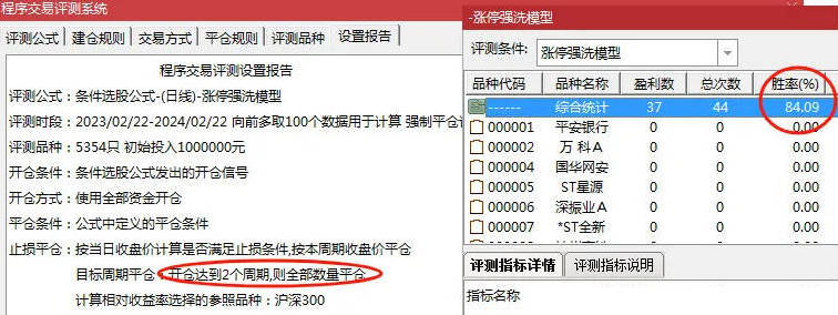 涨停强洗模型是涨停板之后判断能否连板的一种思路,这种模型的胜率非常高,按照本思路,满足条件就买入,持有两个交易日卖出,简单的超短思路,评测了最近一年的情况: