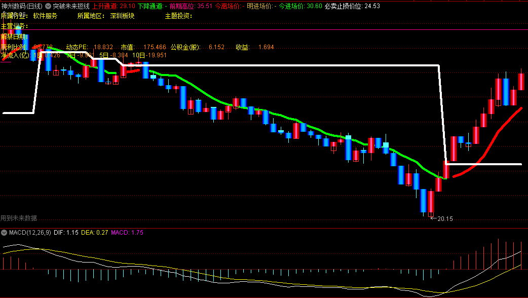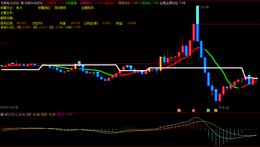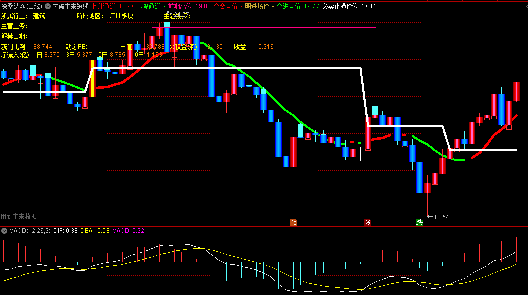 〖突破未来短线抓涨停〗主图指标 上升通道+下降通道 红色持股 青色观望 通达信 源码