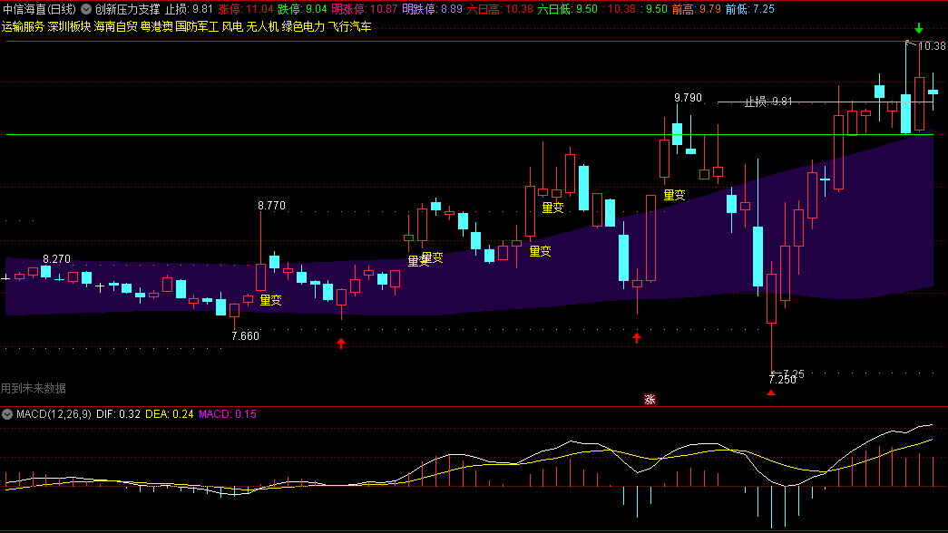 涨跌停价格,六日最高最低价画线,前期最高最低价画线并标注价格。