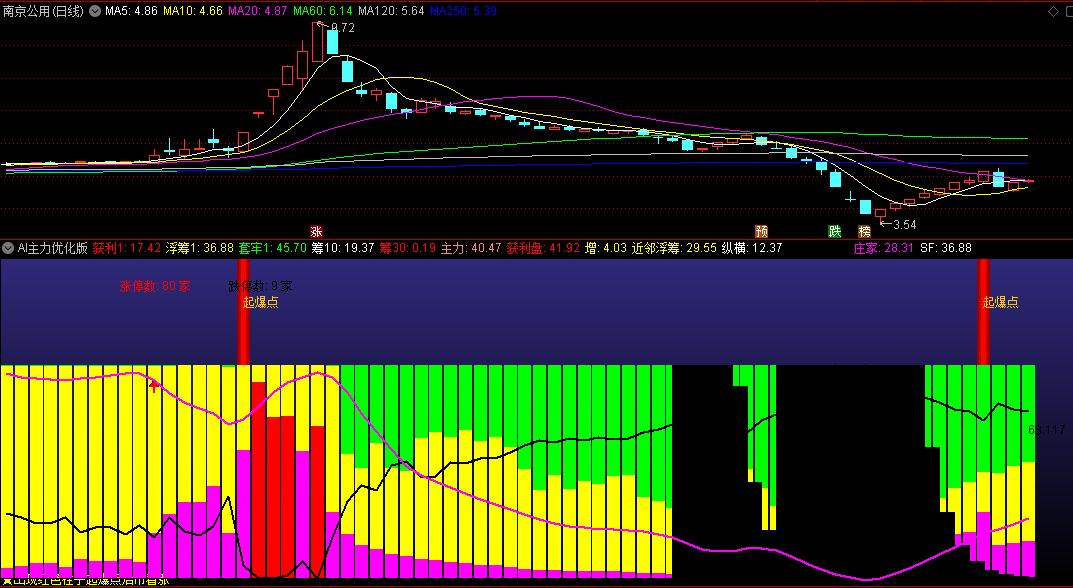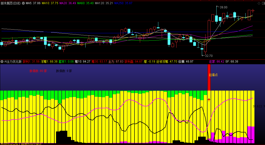 AI主力 优化版,源码分享暂时不加密码。不错的指标,优化的,看起来一目了然个,不喜欢勿喷,基本能反映个股资金进出状况,与AI机构持仓使用,效果甚佳。
