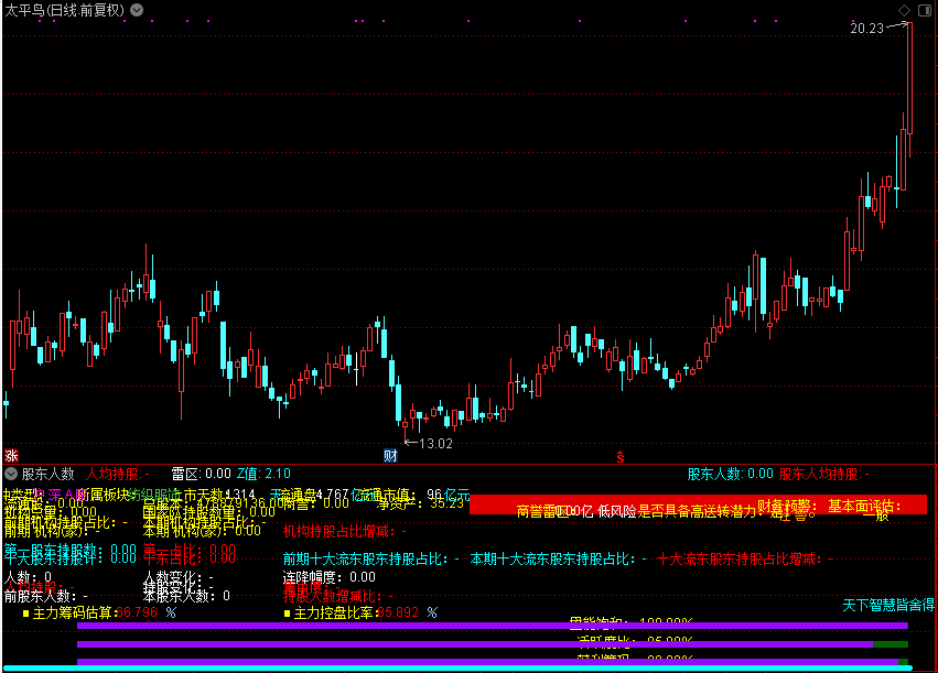 DRAWTEXT_FIX(1,0.0,0.55,0,STRCAT('前股东人数:',CON2STR(前股东人数,0))),COLORWHITE;