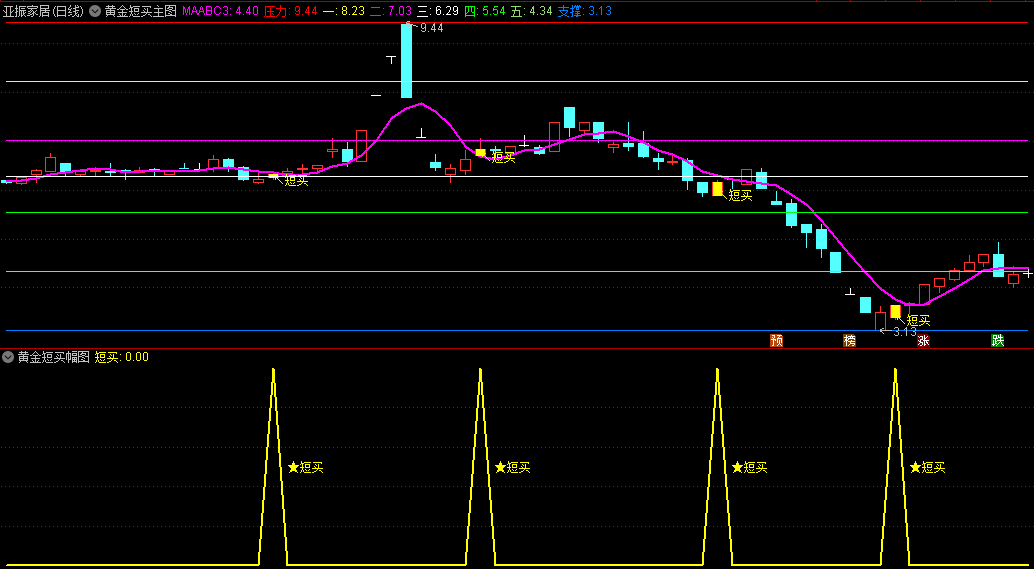 〖黄金短买〗主图/副图/选股指标 黄金分割撑压划线用到了未来 短买信号无未来 通达信 源码