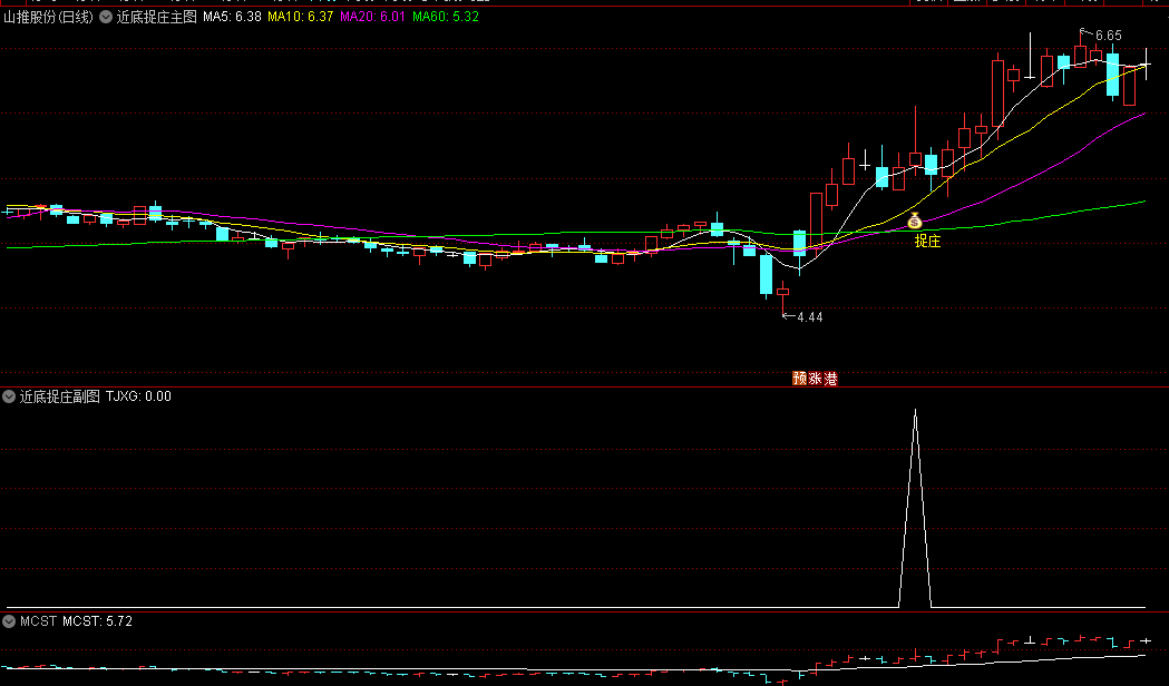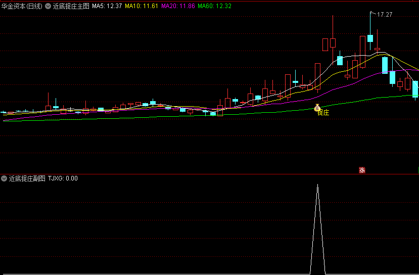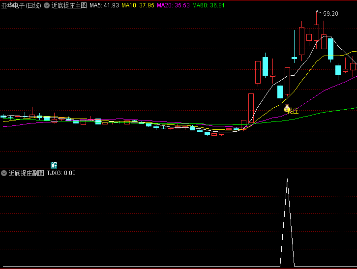 分享一个底部抓庄的指标,短线捉底用来不错,不带任何未来函数,出信号后第二日反弹概率比较高,结合K线所处位置判断,只要不贪心,喝点汤问题不大。好好把握!
