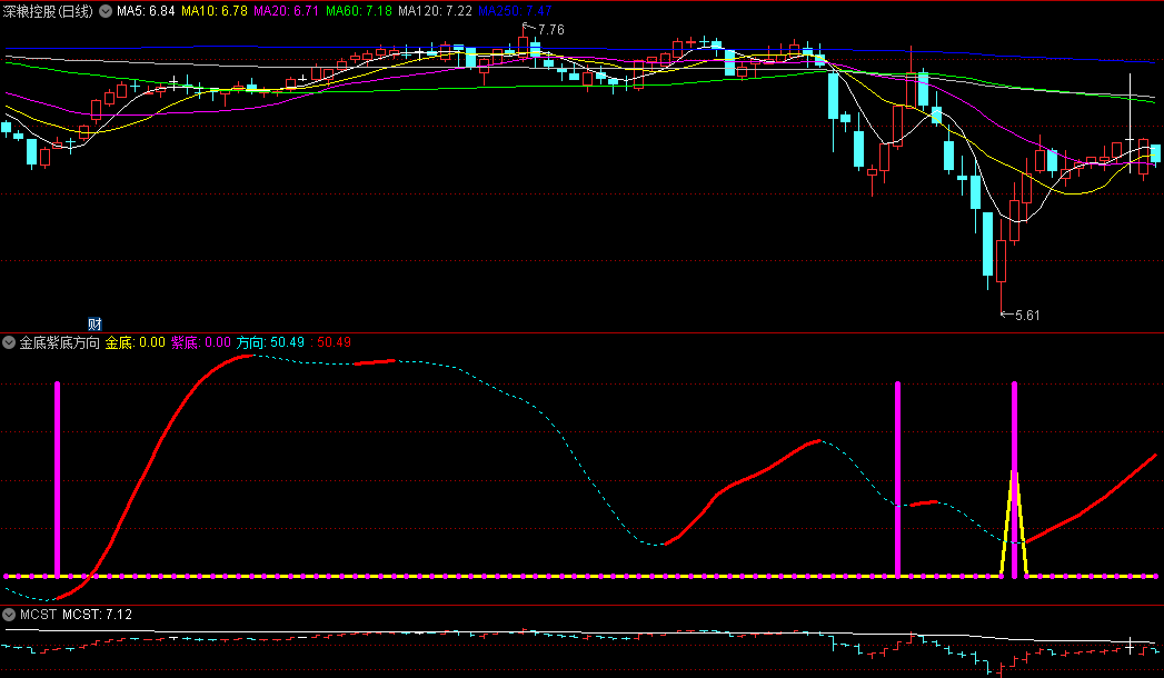〖金底紫底方向〗副图指标 指明底部方向 无未来函数 通达信 源码