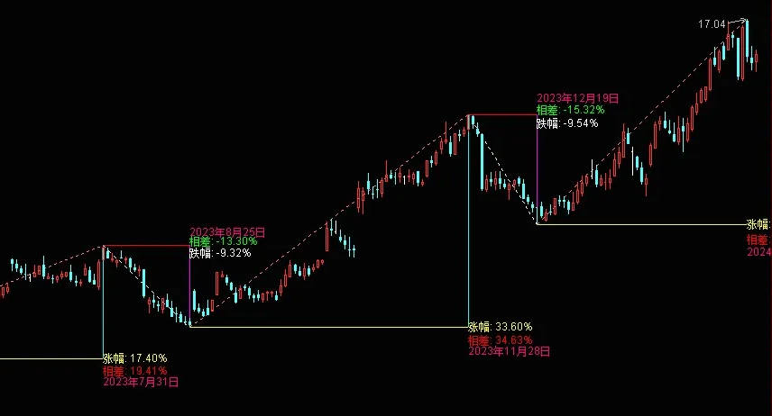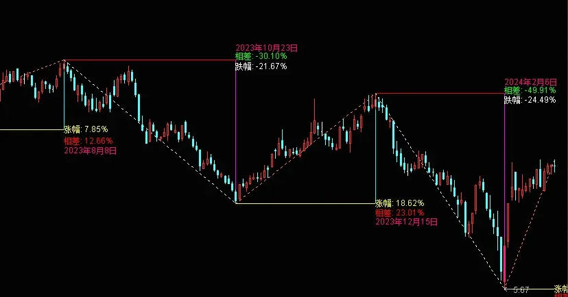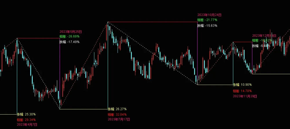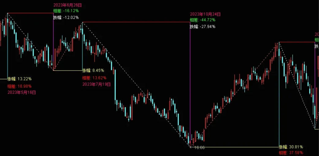 【自创指标】〖时间标注区间划线〗主图指标 画线区间振幅和区间涨幅 涨跌幅度划线 有未来 通达信 源码