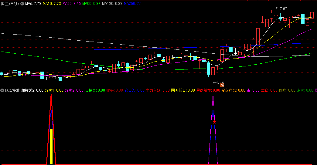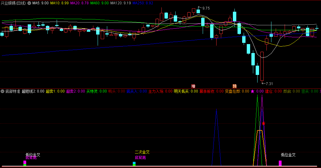 〖底部特准〗副图指标 综合各种技术 中选牛大底 通达信 源码
