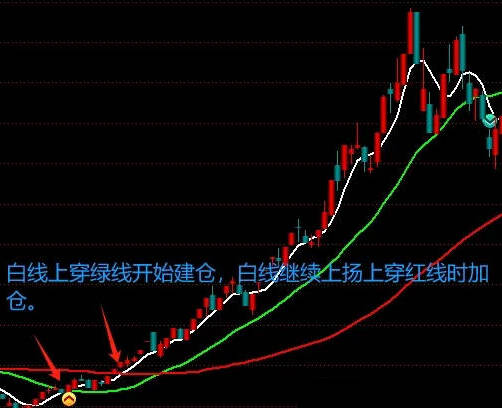当白线上穿绿线时开始建仓,买入后,如果白线继续上扬并上穿红线时可以考虑加仓。根据个人爱好自编自用,分享交流!